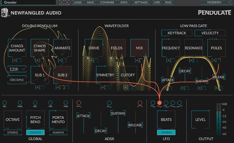 Bored of the same old synth sounds? Newfangled Audio's Pendulate is refreshingly different. Pendulate is a chaotic monosynth that uses a brand new double-pendulum-oscillator to create previously unheard sounds - biting basses, searing leads, and gritty textures. It can smoothly fade from a sine wave to total chaos, with an expanse of territory to explore in between.
